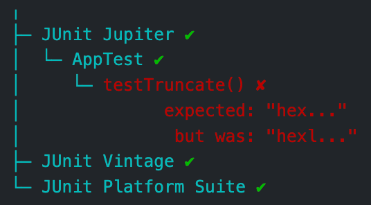 Но если значения не совпадают, возникает ошибка AssertionFailedError .