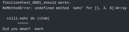 Одна из отличительных и приятных особенностей Ruby — если вы ошиблись в названии метода, Ruby подскажет, какой метод имелся в виду: