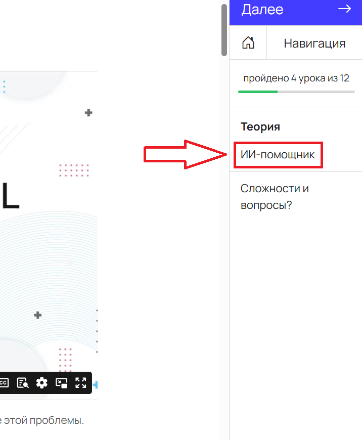 Первое место, куда обязательно нужно задать вопрос, независимо от формата вашего обучения — это ИИ-помощник внутри тренажера. Он доступен на каждом этапе прохождения курса и может помочь разобраться с любым вопросом касательно обучения программированию.