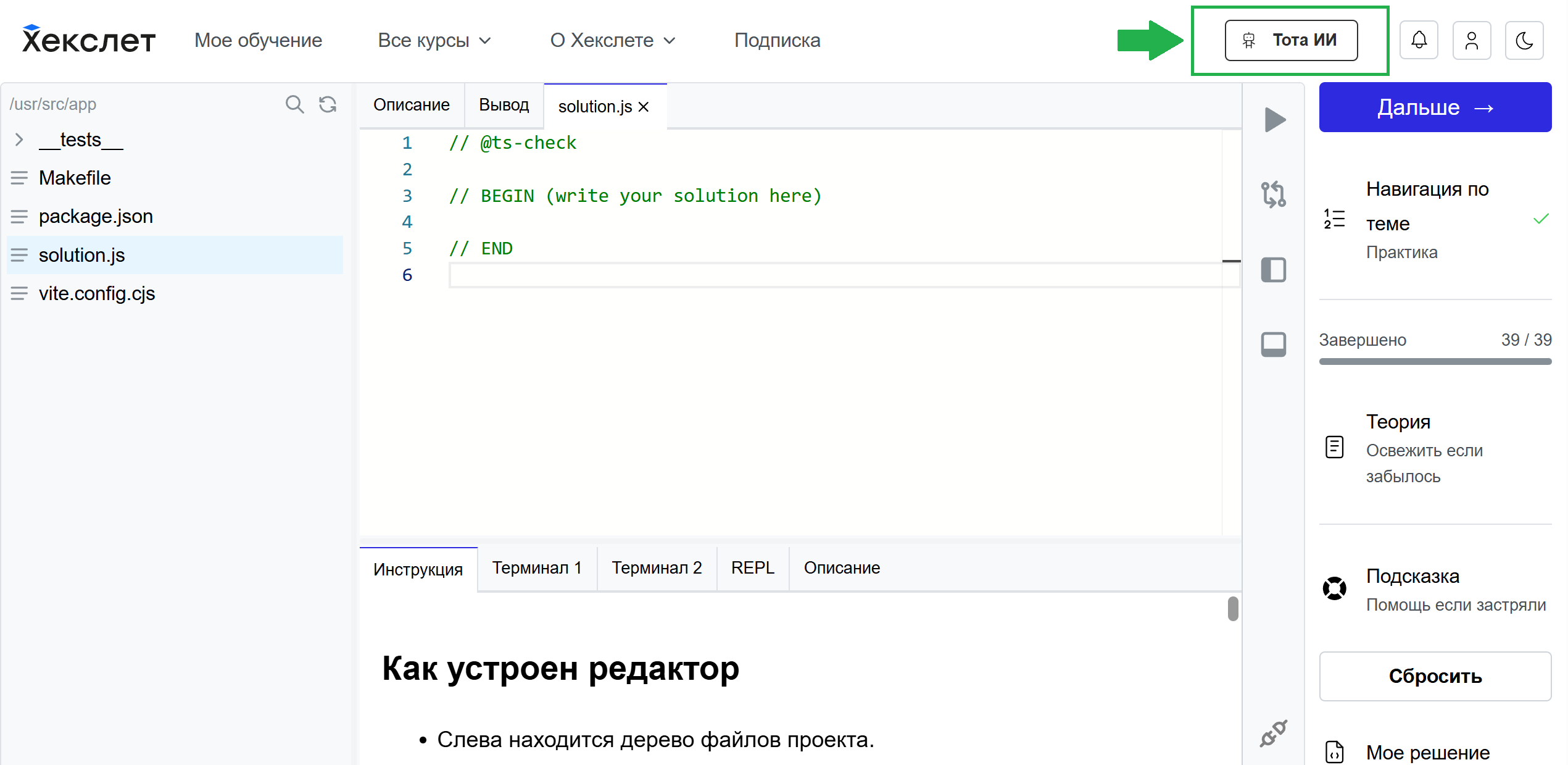 Всё самое важное об ИИ-помощнике в практиках Хекслета.