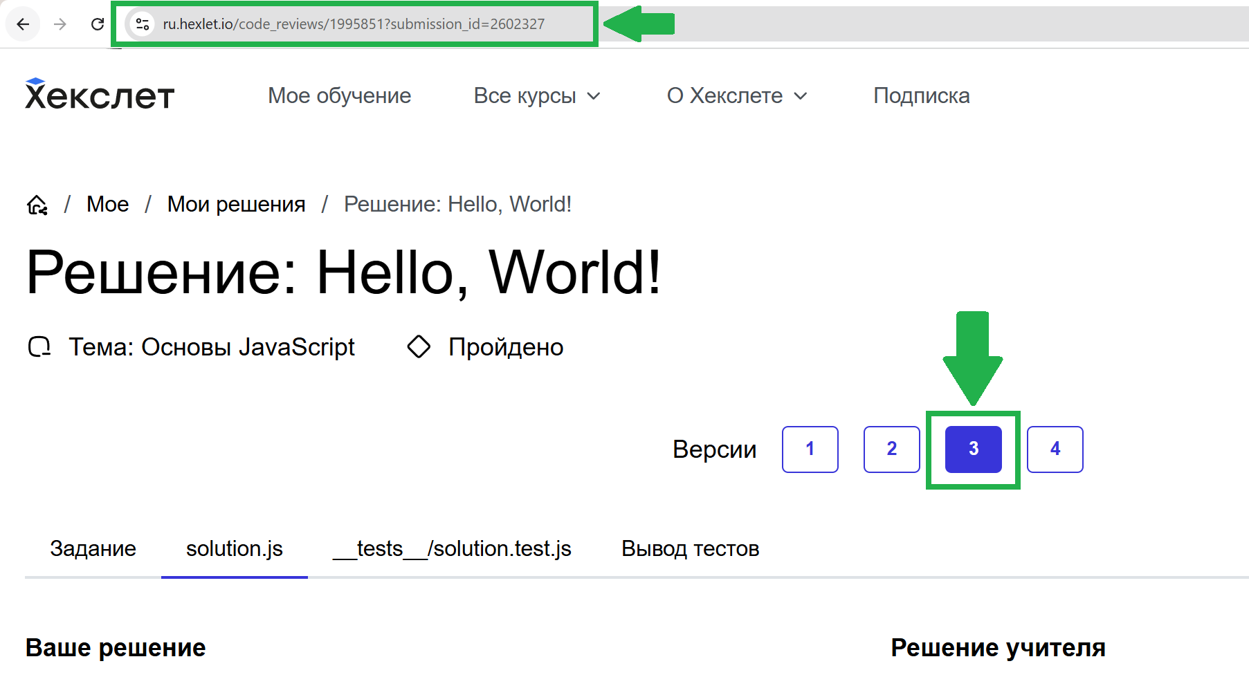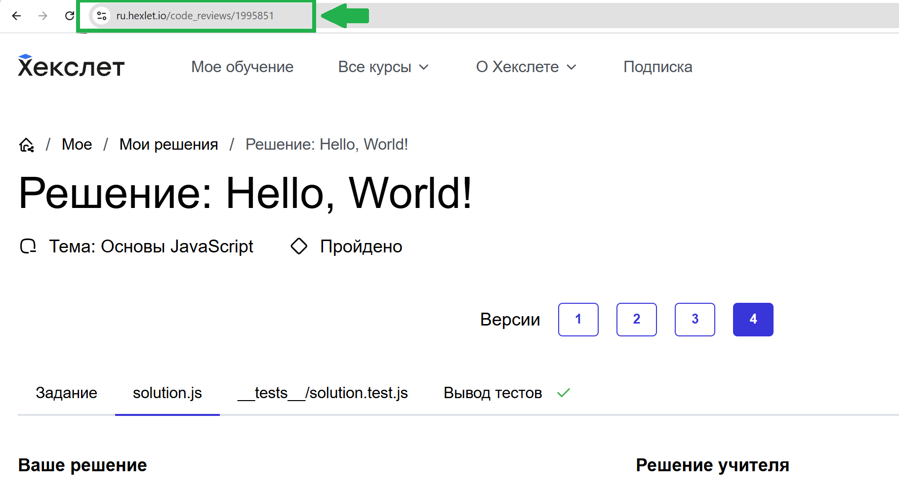 А если потребуется, то можно выбрать нужную версию вашего решения одного и того же упражнения и скопировать ссылку именно на него.
