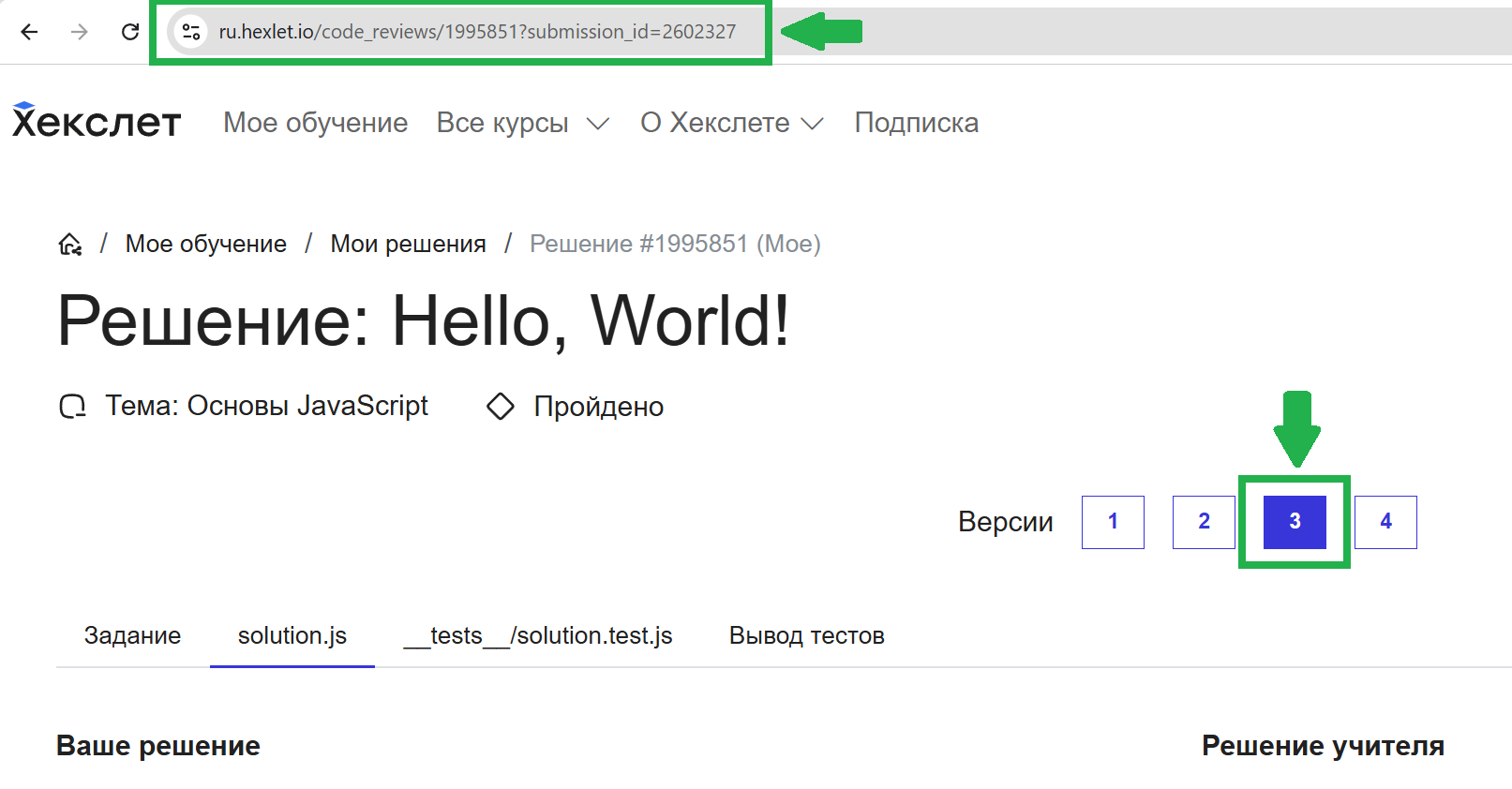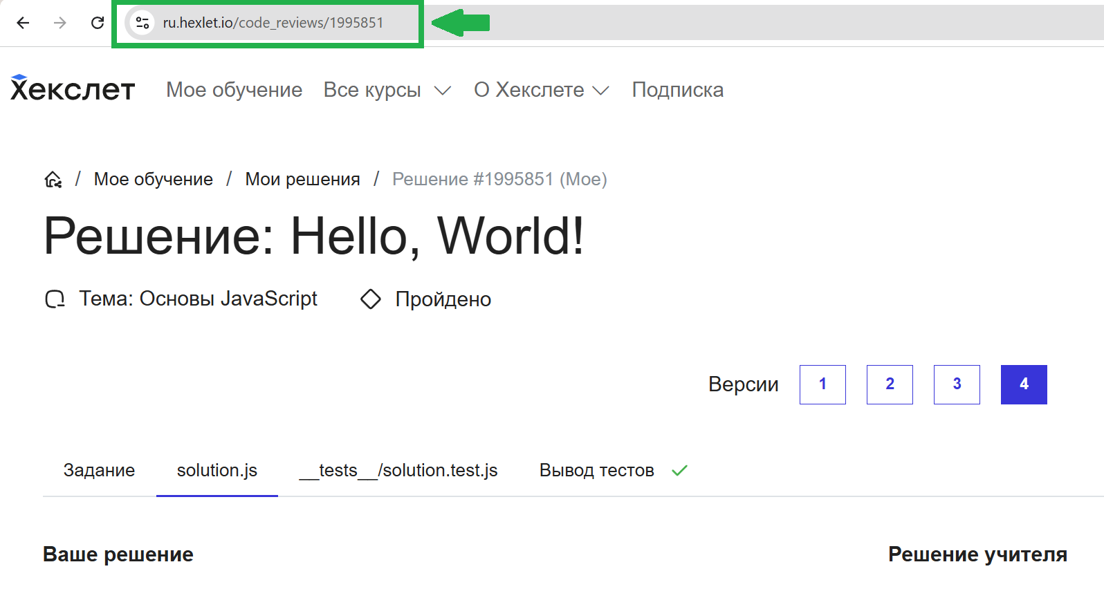 А если потребуется, то можно выбрать нужную версию вашего решения одного и того же упражнения и скопировать ссылку именно на него.