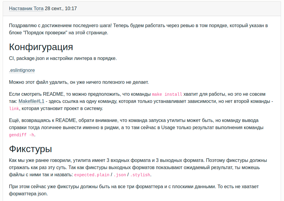 Если проект был сделан самостоятельно и принят автоматической проверкой, получить код-ревью от наставника тоже будет полезно. Для этого нужно сменить формат обучения и поработать с наставником индивидуально. Оставьте заявку, мы с вами свяжемся и поможем всё организовать.