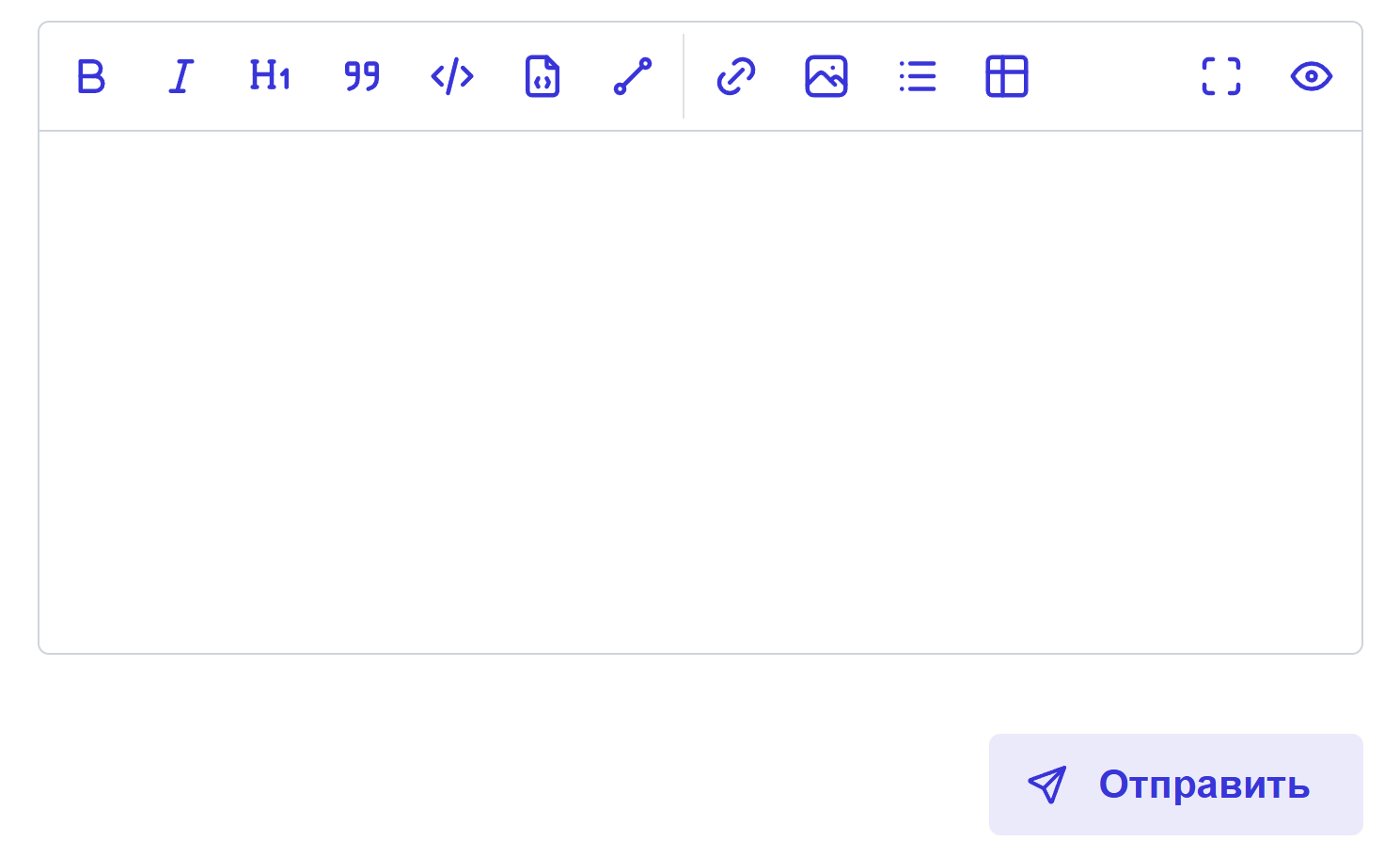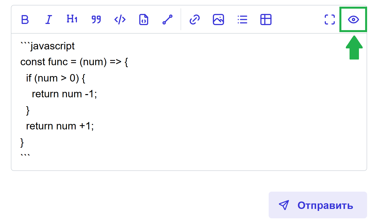 Чтобы проверить, как сообщение будет выглядеть после отправки, можно включить режим просмотра через кнопку с иконкой "глаз":
